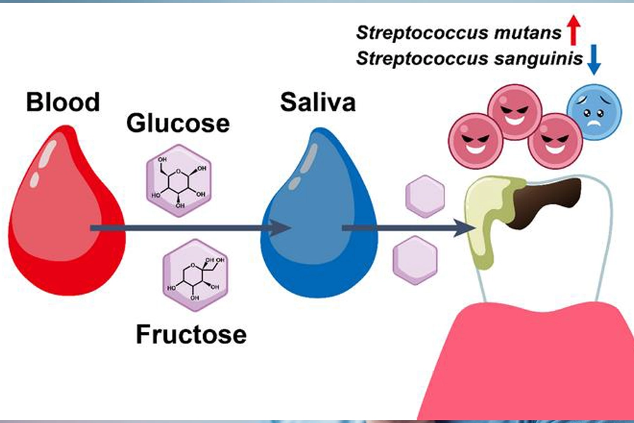 Diabetes and cavities: Sugars move from blood to saliva causing oral microbiome dysbiosis